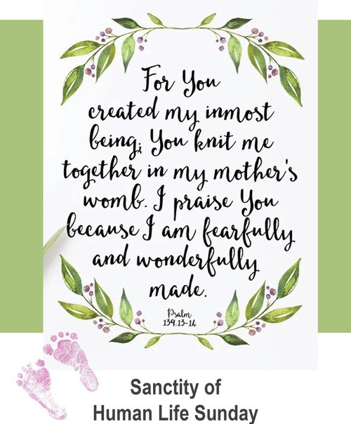 Pastor Young will preach from Psalm 139 in recognition of Sanctity of Human Life Sunday that every human life is precious to God our Creator.